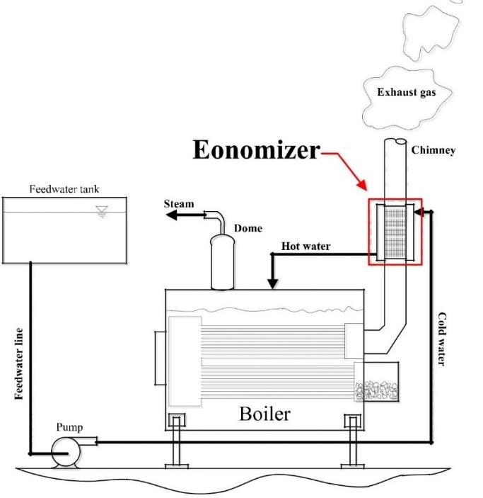 Economizer คืออุปกรณ์แลกเปลี่ยนความร้อน (Heat Exchanger) ที่ติดตั้งในทางเดินก๊าซไอเสียของหม้อไอน้ำ เพื่อ กู้คืนความร้อนจาก flue gas มาอุ่นน้ำป้อน (feedwater) ก่อนเข้าสู่ boiler