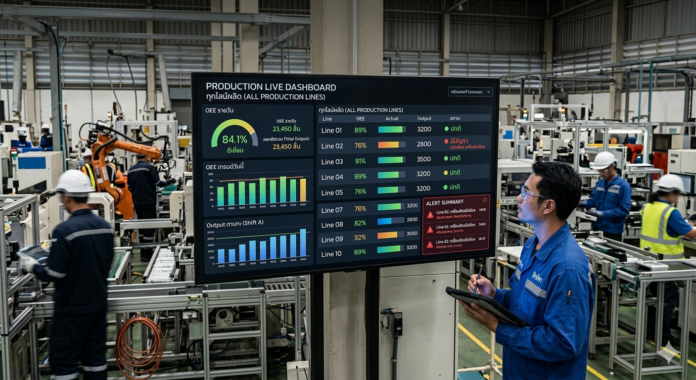 การใช้ Dashboard ผ่าน Manufacturing Execution System (MES) ทำให้ทุกไลน์ผลิตสามารถแสดง OEE, Output และ Alert แบบสดบนหน้าจอเดียว วิศวกรและผู้บริหารเห็นข้อมูลพร้อมกันทั้งองค์กร