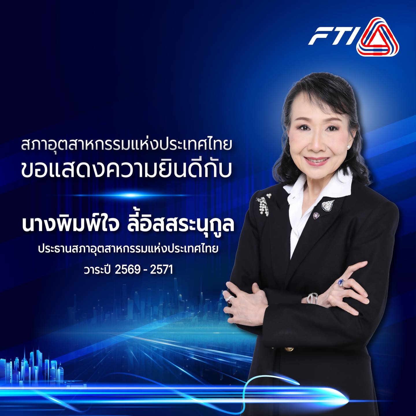 สภาอุตสาหกรรมแห่งประเทศไทย (FTI) ขอแสดงความยินดีอย่างยิ่งกับ นางพิมพ์ใจ ลี้อิสสระนุกูล ในโอกาสเข้าดำรงตำแหน่ง ประธานสภาอุตสาหกรรมแห่งประเทศไทย ประจำวาระปี 2569–2571
