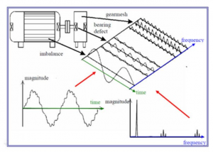 ซึ่งการบ่งบอกว่าความเสียหายเกิดที่ความถี่เท่าไหร่ และมีลักษณะกราฟแบบไหนก็เกิดจากการที่เราแปลงกราฟการสั่นสะเทือนจากในรูปแบบ Time-Domain ให้อยู่ในรูปแบบ Frequency domain ด้วยความสัมพันธ์ทางคณิตศาสตร์ด้วยหลัก Fast Fourier Transform จากท่านนักวิทยาศาสตร์และคณิตศาสตร์ชาวฝรั่สเศส Jean-Baptiste Joseph Fourier นั้นเองครับผม