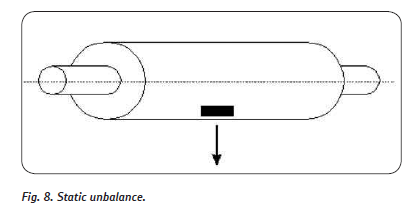 ปัญหาแรก Unbalancing เกิดจากการไม่ได้ศูนย์ของเครื่องจักร ซึ่งเกิดจากมวลขนาดใหญ่ที่ไม่ได้สมดุล จึงทำให้มีลักษณะของการสั่นสะเทือนที่มี Amplitude สูง และช่วงความถี่ต่ำ (ประมาณ 1 เท่าของความเร็วรอบ) และเฟสต่างกันค่าหนึ่ง (ขึ้นอยู่กับว่าเป็น unbalance แบบไหน)