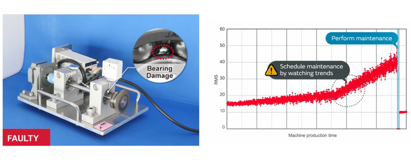 ซึ่งหากเราใช้งานไปซักระยะ แน่นอนว่าเครื่องจักรทุกๆตัว ก็จะมีการสึกหรอไปเรื่อยๆไม่มากก็น้อย ค่าความสั่นสะเทือน หรือ Vibration ก็จะค่อยๆเพิ่มขึ้นมา จนถึงค่าๆหนึ่ง ค่าที่ความสั่นสะเทือนเกินค่ามาตราฐาน มันก็จะแจ้งเตือนเรามาแล้วว่า “มีความผิดปกติ”