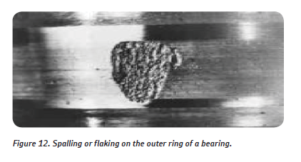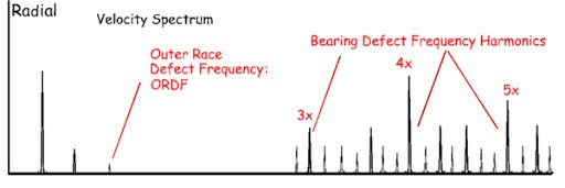 ส่วนปัญหาที่สอง ปัญหาสารหล่อลื่นในตลับลูกปืนไม่เพียงพอ (Lack of lubrication) ซึ่งปัญหานี้ลักษณะเป็นเหมือนรอยเล็กๆในตลับลูกปืน แต่การหมุน 1 รอบของเครื่องจักร จะทำให้มีลูกปืนจำนวนหลายลูกเคลื่อนที่ผ่านรอยแผลเล็กๆนี้ จึงทำให้เกิดลักษณะของการสั่นสะเทือนในลักษณะที่ว่า Amplitude จะต่ำ แต่การเกิดจะเกิดที่ตำแหน่งความถี่สูงๆ ครับ