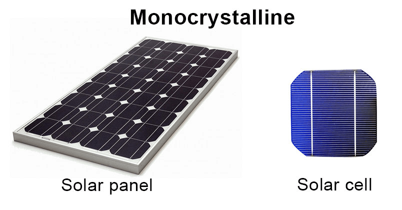 เป็นแผงโซล่าเซลล์ที่ทำมาจาก “ผลึกซิลิคอนเชิงเดี่ยว (Mono-Si)” ซึ่งเป็นซิลิคอนที่มีความบริสุทธิ์สูง แต่ละ Cells ผ่านกระบวนการ Czochralski process ที่อุณหภูมิสูง ทำให้ซิลิคอนเกิดผลึกเกาะกันที่แกนกลาง จนทำให้เป็นทรงกระบอก นำมาตัดเป็นสี่เหลี่ยมบางๆ พร้อมทั้งลบมุมทั้ง 4 ด้านออก และมีสีเข้ม