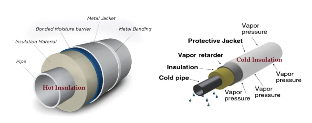• Cold insulation เลือกใช้ในกรณีที่ Operating temperature น้อยกว่า Ambient temperature เพื่อป้องกันการเกิดการควบแน่นที่พื้นผิวครับ (Condensation)