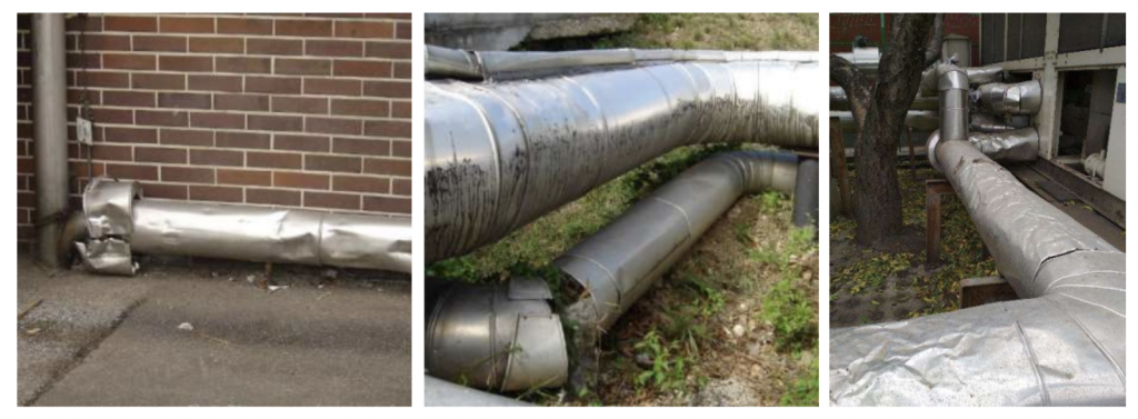 • Insulation jacketing หรือ Insulation Cladding และ Fastening (Banding) ต่างๆ หรือก็คืออุปกรณ์หุ้มทับฉนวนกับ Vapor barrier อีกชั้นหนึ่งเพื่อให้ฉนวนที่ห่อหุ้มท่อของเรานั้นยึดติดแน่นหนาและถือว่าเป็นการ์ดอีกชั้นหนึ่งในกรณีที่มีแรงกระทำกับฉนวน จะไม่ทำให้ฉนวนเกิดความเสียหายครับ ชิ้นส่วนนี้ถือว่าเป็นชิ้นส่วนที่สำคัญมากชิ้นหนึ่งเลยนะครับ เพราะนอกจากจะป้องกันแรงกระแทกต่างๆที่เกิดขึ้นแล้ว ยังช่วยสามารถลดการสัมผัสกับปัจจัยภายนอกที่อาจจะส่งผลให้ฉนวนของเราเกิดการเสื่อมสภาพได้อีกด้วยครับผม
