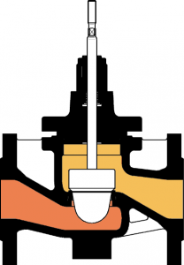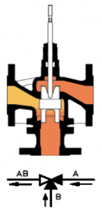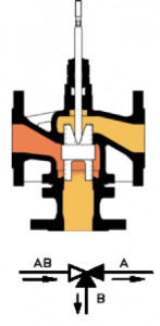 (2) 3-Ways Mixing Valve จะเป็นชนิดที่มีทั้งหมด 3 ทาง โดยประกอบไปด้วย 2 Input ที่เข้ามาผสมกัน และออกเป็น Output 1 ทาง