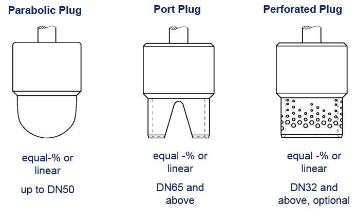 (a) ขนาดของท่อที่จะใช้งานร่วมกับ Globe control valve ซึ่งรูปแบบของ Plug และลักษณะของเส้นโค้ง ในการใช้งานของ Globe control valve โดยจะขึ้นกับตามขนาดของ Valve ที่เราจะไปใช้งาน ตามรูปด้านล่าง