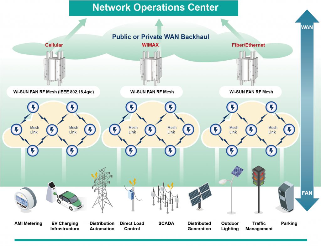 สำหรับการส่งสัญญาณแบบ WNAN หรือ Wireless Neighborhood Area Network เป็นเทคโนโลยีการเชื่อมต่ออุปกรณ์ทั้งระยะสั้น-ไกล โดยตัวอย่างของโปรโตคอล ในกลุ่มนี้ได้แก่ Wi-Smart Utility Network (Wi-SUN) และ Zigbee-NAN บนมาตรฐาน IEEE 802.15.4g โดยมีระยะทางการส่ง 5 – 10 กิโลเมตรเลยทีเดียว