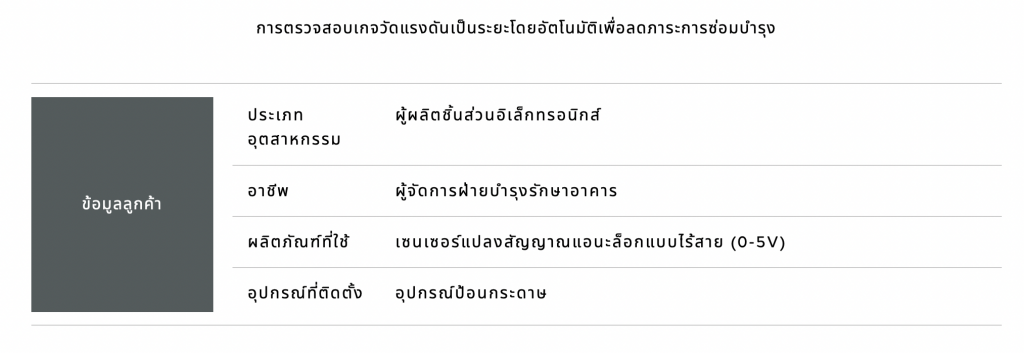 กรณีศึกษาในลดเวลาการบำรุงรักษาได้ถึง 90 ชั่วโมงต่อเดือน โดยการเก็บรวบรวมข้อมูลแบบอัตโนมัติ