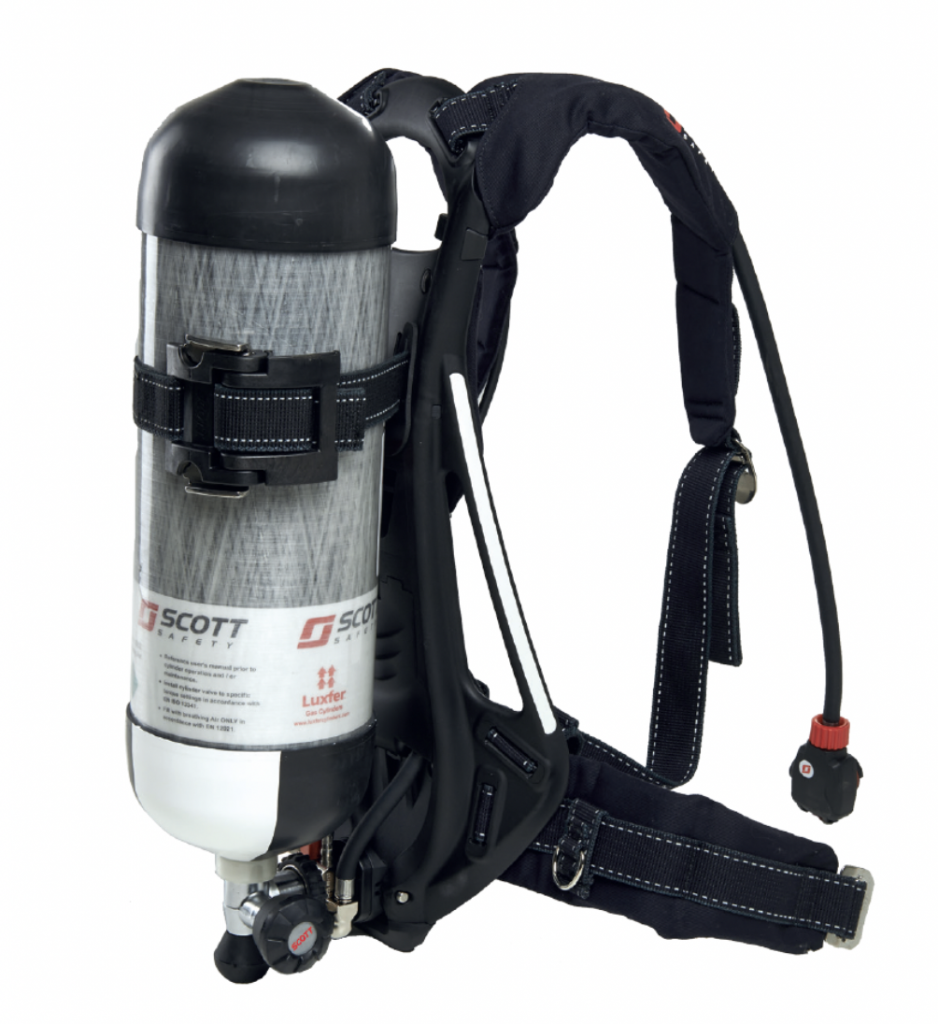 Self- Contained Breathing Apparatus (SCBA) เป็นถังอัดอากาศที่ต่อเข้ากับหน้ากาก ใช้สำหรับป้องกันระบบทางเดินหายใจในบรรยากาศที่มี ก๊าซ ไอ อนุภาค และสภาพที่ขาดออกซิเจน หรือในสภาวะอากาศที่เป็นอันตราย การใช้ SCBA จะมีเวลาจำกัดในการใช้งาน ผู้ใช้งานจำเป็นต้องฝึกอบรมให้มีความรู้และเข้าใจก่อนนำไปใช้ใช้งาน