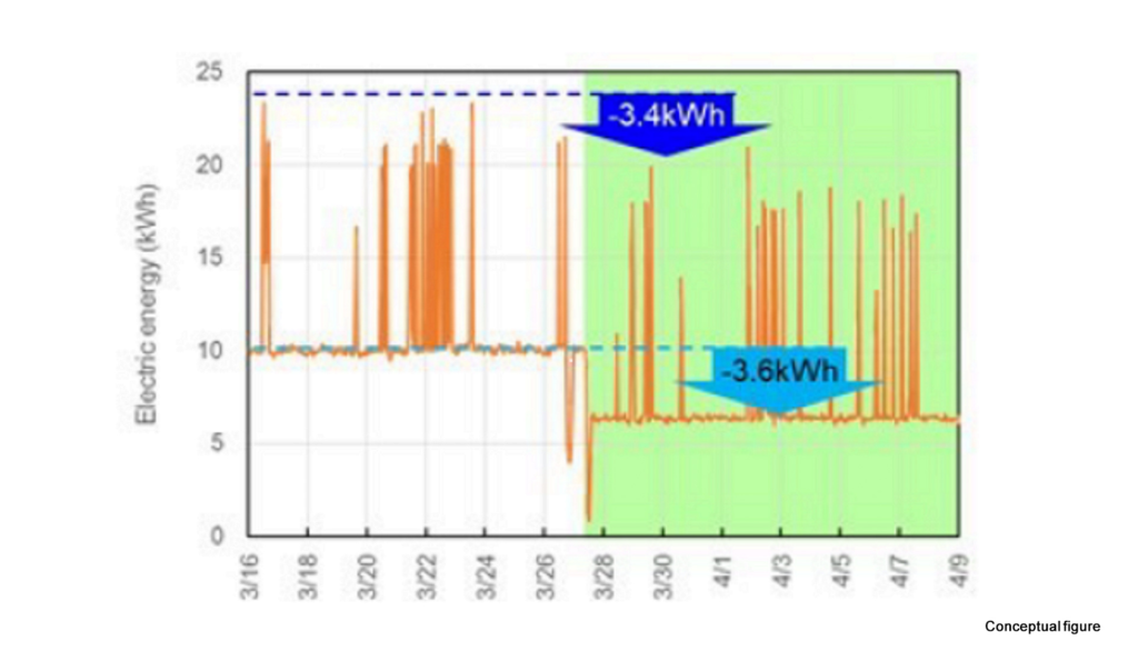 จากนั้นโรงงานก็สามารถวิเคราะห์กราฟการใช้พลังงานและพบว่าการใช้พลังงานในช่วงสแตนด์บายของเครื่องผลิตฟิล์มโลหะอยู่ในระดับสูง